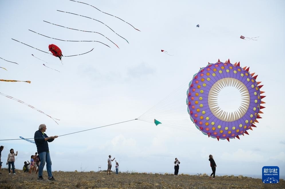 10月19日,在馬耳他戈佐島阿爾卜,人們?cè)诘?屆戈佐國(guó)際風(fēng)箏節(jié)上放風(fēng)箏。