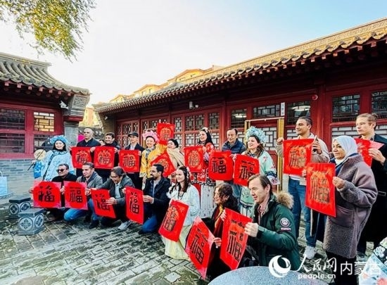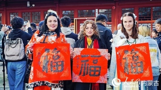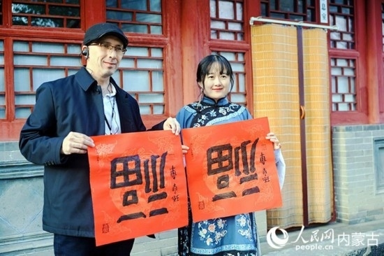 人民網(wǎng)呼和浩特10月23日電 (張聿修、孟佳澍、張雪冬、實習生朱昱晗)?!暗埂绷耍扛!暗健绷?!擺弄著手中的福字,了解到關于福字的寓意,塔吉克斯坦記者烏斯蒙·阿卜杜恰洪洛夫露出驚訝的表情,感嘆中國語言蘊含的智慧。