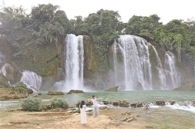 瀑布所在的歸春河上游,云霧繚繞。玉文兵對記者說:“我家在距此12公里外的板屯村。那里也有很多山泉水,海拔近1000米,交通不便,知名度還不高。但我相信,越中跨境游的發(fā)展會讓我的家鄉(xiāng)走上致富路,到時要請中國朋友們來做客?!?/p>