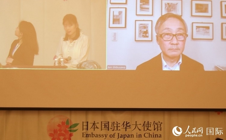 澀澤與企業(yè)股份有限公司董事長(zhǎng)澀澤?。ㄓ遥┳鼍€上講座。人民網(wǎng) 喻亮攝
