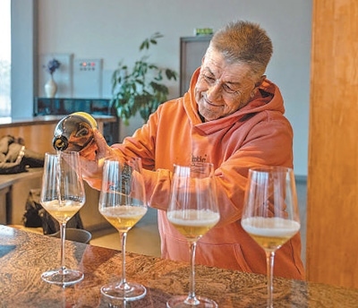 “除了葡萄酒外,我們還不斷拓展釀酒種類(lèi)。這兩款酒是由我們員工自家種植的大米和蘋(píng)果釀制的?!奔贸鰞善烤谱院赖亟榻B道,“它們?cè)谑袌?chǎng)上很受歡迎,農(nóng)產(chǎn)品附加值提高了,員工們的收入更多了,真正實(shí)現(xiàn)了產(chǎn)業(yè)與生活的緊密結(jié)合?!?/p>