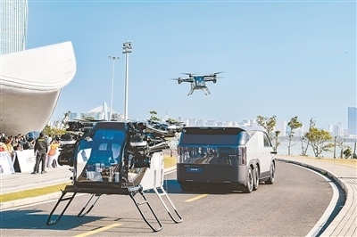 1月21日,海南飛行汽車應(yīng)用示范島項(xiàng)目在海南海口啟動,小鵬匯天展示全球首款可在汽車上自動分離結(jié)合的電動純直起降飛行器。蘇弼坤攝(人民圖片)
