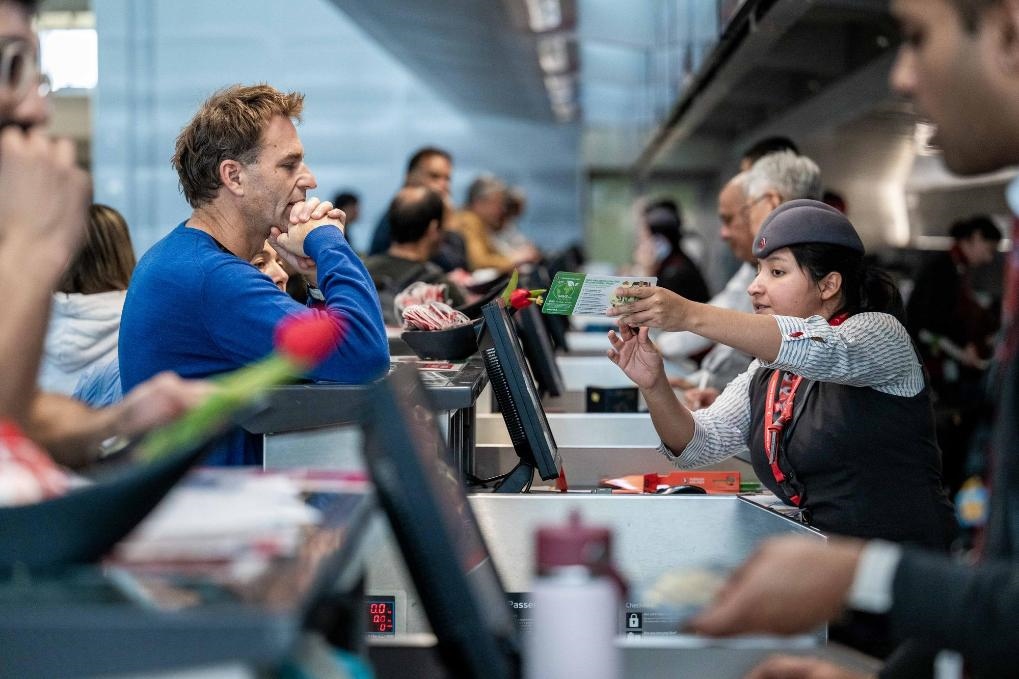 12月20日,旅客在美國舊金山國際機場辦理值機手續(xù)。新華社發(fā)(朱子于攝)