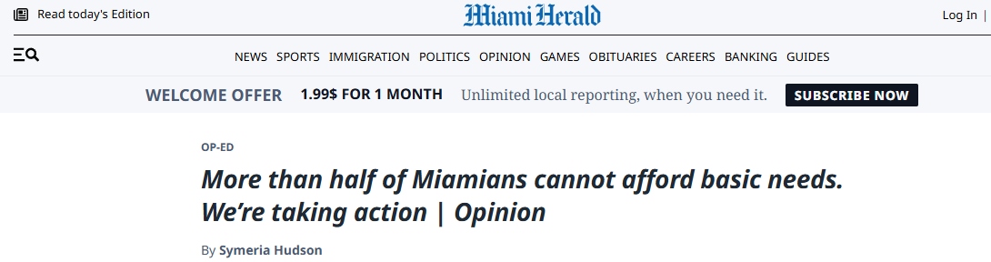 文章表示,在邁阿密,現(xiàn)實令人清醒:戴德縣超過五十萬個家庭難以負擔住房、食品、醫(yī)療、托兒、交通和技術(shù)等必需品和服務。家庭收入與實際生活成本之間的差距持續(xù)擴大。西默里亞·哈德森在文中強調(diào),這些挑戰(zhàn)并非抽象概念。當家庭被迫在支付房租和喂養(yǎng)孩子之間作出選擇時,這并非個人失敗,而是系統(tǒng)性問題。這需要企業(yè)領(lǐng)導者、政策制定者、教育者、醫(yī)療系統(tǒng)、非營利組織和普通公民共同努力。