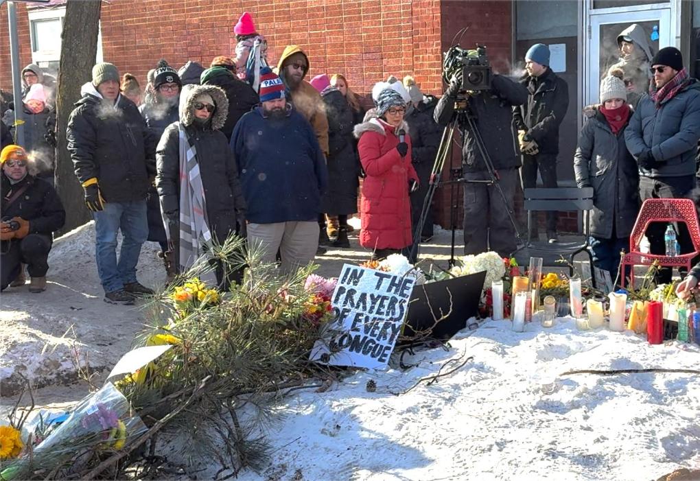 1月25日,在美國(guó)明尼蘇達(dá)州明尼阿波利斯,人們悼念槍擊事件遇難者(手機(jī)照片)。圖源:新華社