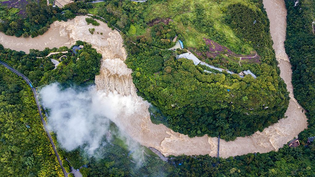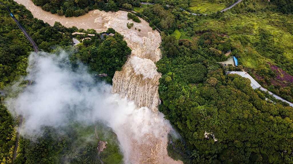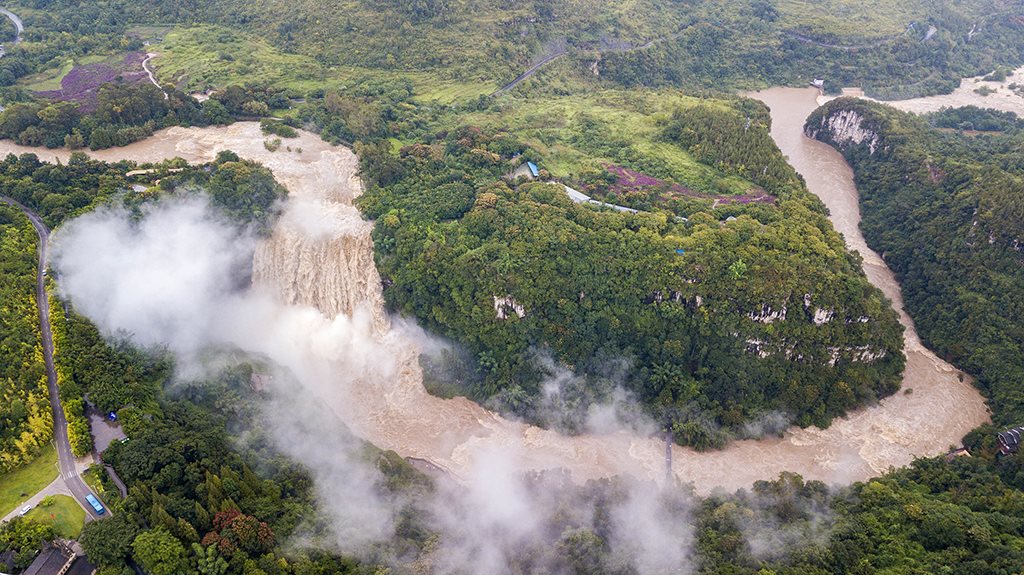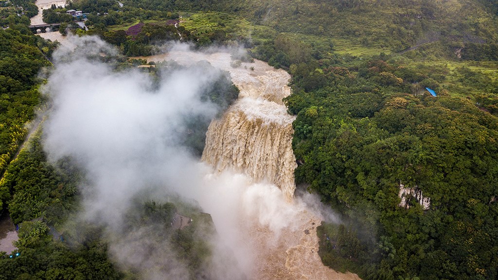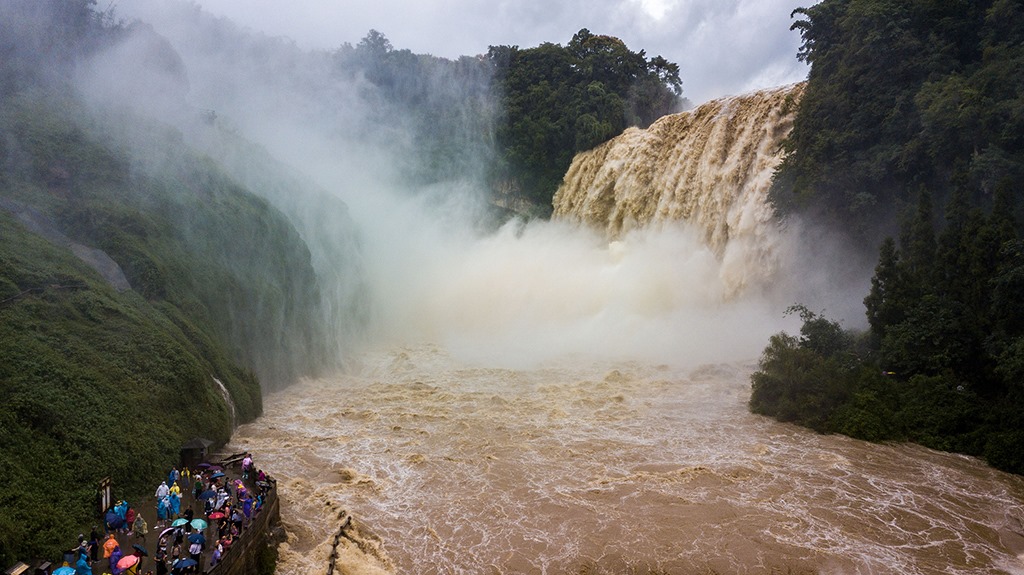 受強降雨影響,貴州黃果樹瀑布迎來2020年入汛以來最大水量,黃果樹瀑布水勢磅礴。陳熙/攝