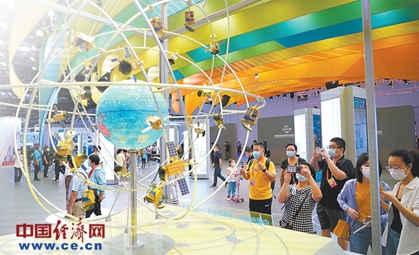 9月5日,觀眾在2020服貿(mào)會綜合展區(qū)觀看北斗衛(wèi)星模型。經(jīng)濟日報-中國經(jīng)濟網(wǎng)記者趙晶攝