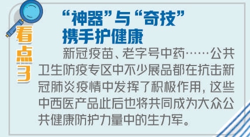 新冠肺炎疫情發(fā)生后,公共衛(wèi)生防疫問題引發(fā)了空前的關注。綜合展區(qū)的公共衛(wèi)生防疫專題展區(qū)以“人人享有健康安全”為主題,集中展示了國內(nèi)外關于疫情防控的新產(chǎn)品、新技術及中國解決方案。由國藥集團中國生物、科興中維展出的兩款新冠疫苗吸引了大量觀眾駐足觀看,了解情況。據(jù)國藥集團中國生物相關負責人介紹,企業(yè)已經(jīng)對新冠疫苗進行了生產(chǎn)布局,位于湖北武漢和北京的2個生產(chǎn)基地年產(chǎn)能達到3億劑。