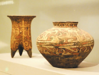 夏商時(shí)期彩繪陶鬲、彩繪陶罐。杜建坡攝