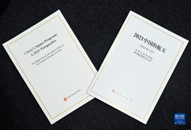 這是1月28日拍攝的《2021中國的航天》白皮書。當日,國務(wù)院新聞辦公室發(fā)布《2021中國的航天》白皮書,并在北京舉行新聞發(fā)布會?!⌒氯A社記者 金良快 攝