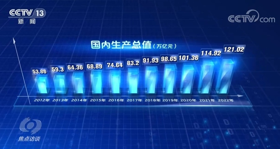 疫情三年來(lái),面對(duì)前所未有的困難挑戰(zhàn),中國(guó)經(jīng)濟(jì)頂住壓力,保持了4.5%左右的年均增長(zhǎng),經(jīng)濟(jì)總量陸續(xù)突破100萬(wàn)億、110萬(wàn)億和120萬(wàn)億元大關(guān)。