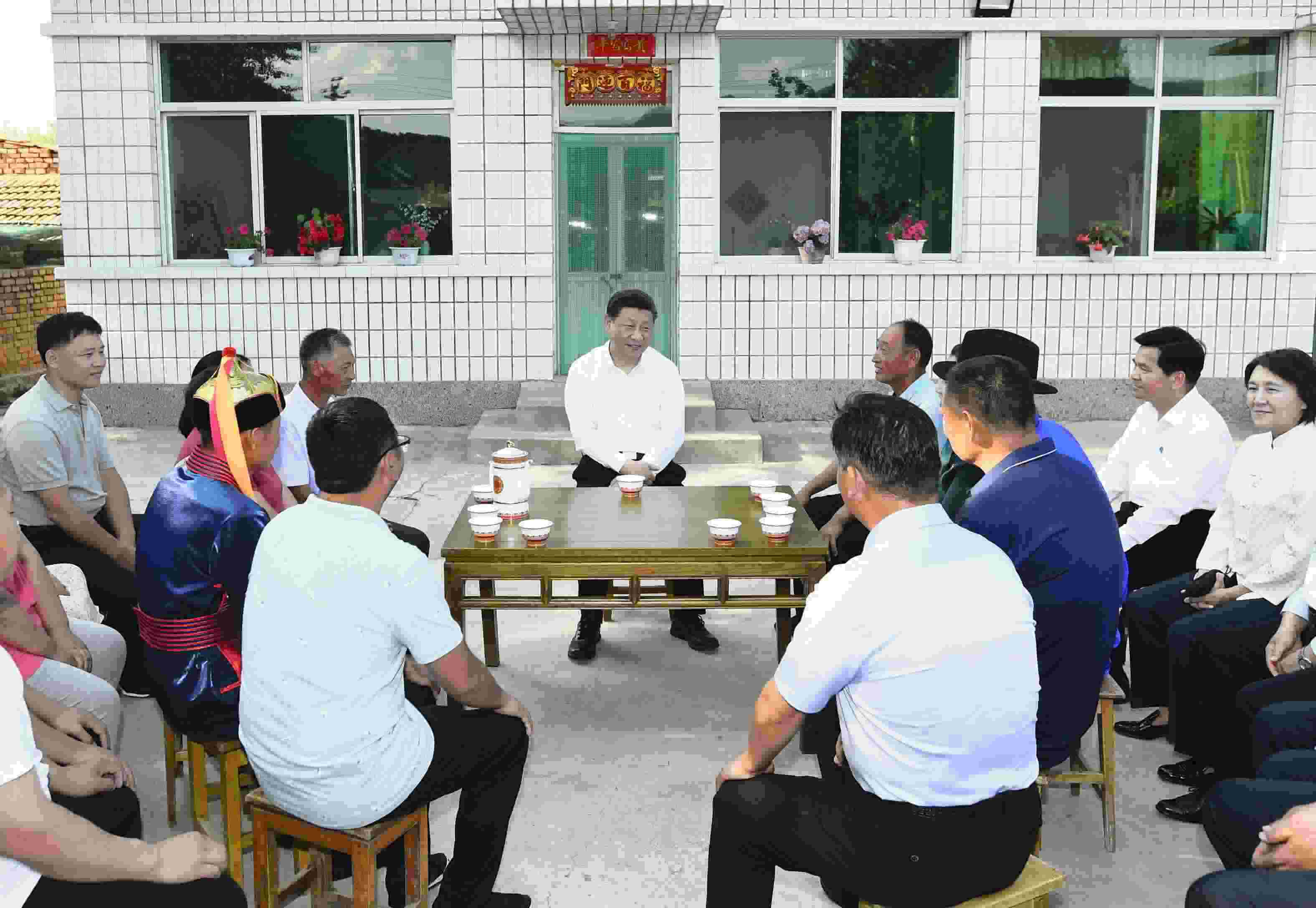 2019年7月15日至16日,中共中央總書記、國家主席、中央軍委主席習(xí)近平在內(nèi)蒙古考察并指導(dǎo)開展“不忘初心、牢記使命”主題教育。這是15日下午,習(xí)近平在赤峰市喀喇沁旗河南街道馬鞍山村村民張國利家,同基層干部群眾代表座談交流。 新華社記者 謝環(huán)馳/攝