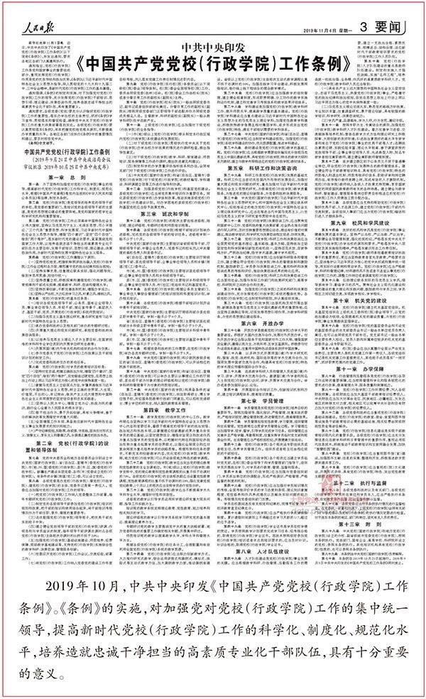 ——“黨委辦黨校、黨委管黨校、黨委建黨?!?。習(xí)近平總書(shū)記強(qiáng)調(diào),“各級(jí)黨委是辦黨校管黨校建黨校的主體,黨委書(shū)記是辦黨校管黨校建黨校的第一責(zé)任人”;“要把黨校工作納入黨委工作部署和黨的建設(shè)工作年度目標(biāo)考核,每年至少專題研究一次黨校工作”;“各級(jí)黨委主要負(fù)責(zé)同志要經(jīng)常過(guò)問(wèn)黨校工作,要到黨校調(diào)研指導(dǎo)或與學(xué)員座談,加強(qiáng)和改進(jìn)各方面工作”。