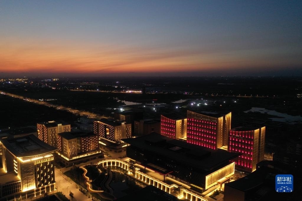 這是雄安新區(qū)商務(wù)服務(wù)中心夜景(2022年9月7日攝,無人機照片)。新華社記者 朱旭東 攝