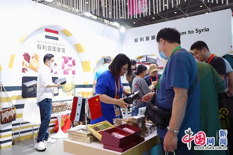 4月11日,工作人員為觀眾介紹敘利亞玫瑰精油等產品。中國網記者 吳亮 攝
