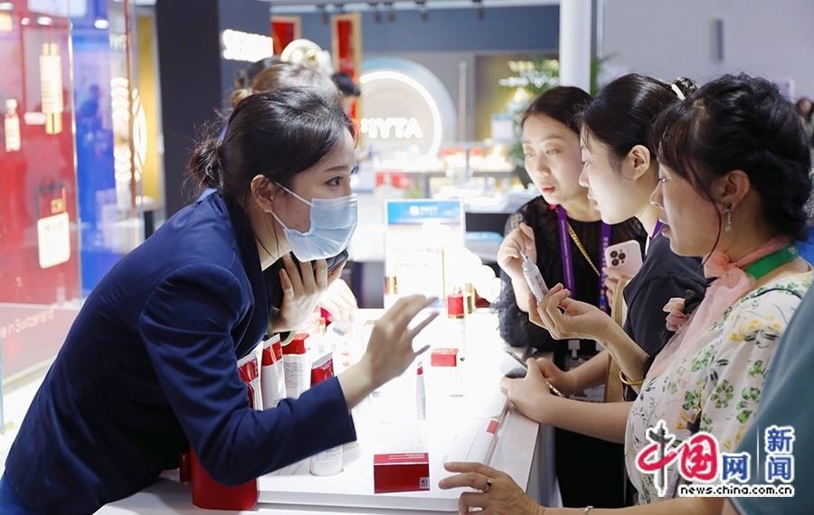4月11日,工作人員為觀眾介紹護膚產品。中國網記者 吳亮 攝