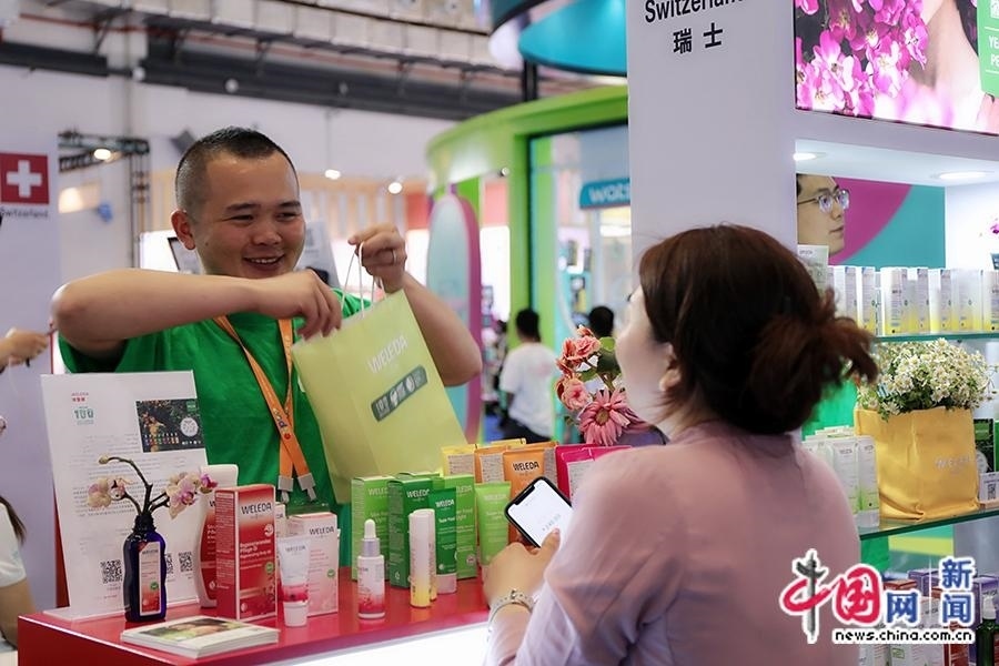 4月11日,工作人員為觀眾介紹瑞士護膚產品。中國網記者 吳亮 攝