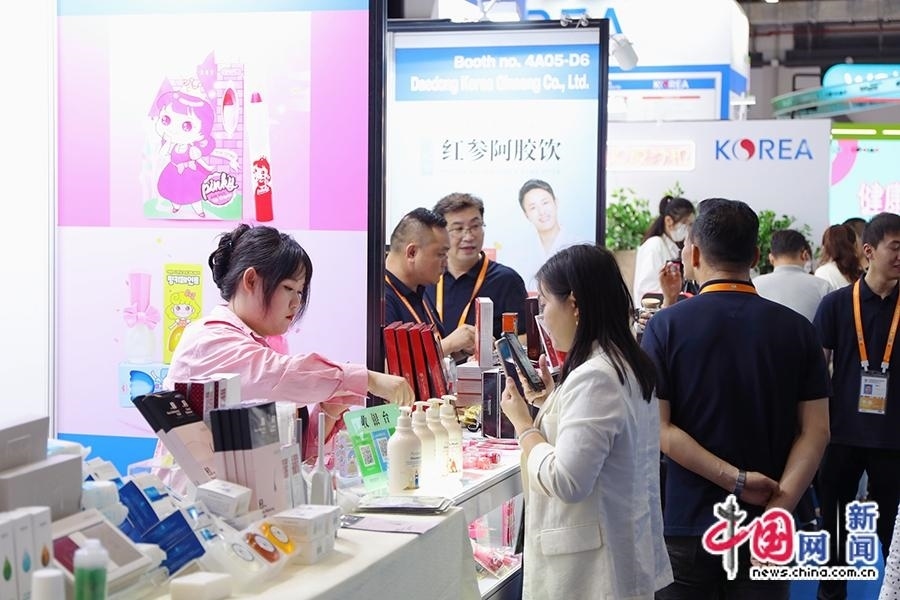 4月11日,工作人員為觀眾介紹韓國護膚品、化妝品和保健品等。中國網記者 吳亮 攝
