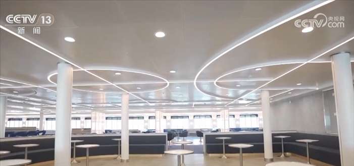 中國(guó)船舶集團(tuán)廣船國(guó)際副總經(jīng)理 周旭輝:這個(gè)船有7000平方米的公共活動(dòng)區(qū)域,所有的裝修材料100%國(guó)產(chǎn)化,對(duì)本土的經(jīng)濟(jì)配套有很大的拉動(dòng)作用。