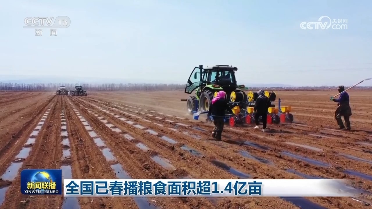 央視網(wǎng)消息(新聞聯(lián)播):農(nóng)業(yè)農(nóng)村部最新農(nóng)情調(diào)度顯示,截至目前,全國已春播糧食面積超1.4億畝,各地多措并舉,高質(zhì)量推進春季農(nóng)業(yè)生產(chǎn)。