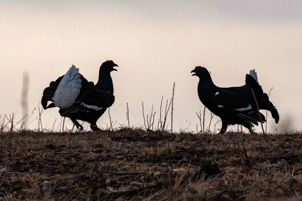 近來(lái)每天早上,天剛蒙蒙亮,黑琴雞就聚集在林間草地打斗。它們時(shí)而追逐對(duì)峙,時(shí)而鐵嘴啄眼,時(shí)而吼聲低沉,時(shí)而銳爪封喉,激烈的打斗場(chǎng)面吸引了眾多攝影愛好者和觀賞者。