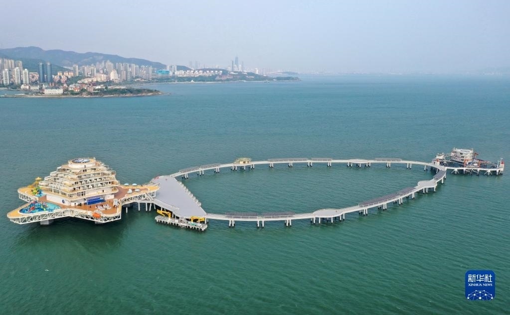 當(dāng)日,位于山東省煙臺(tái)市萊山區(qū)的“耕海1號(hào)”海洋牧場(chǎng)綜合體二期項(xiàng)目投入運(yùn)營(yíng)。“耕海1號(hào)”集漁業(yè)養(yǎng)殖、海上觀光、休閑垂釣、餐飲住宿、科研科普等于一體,創(chuàng)新性實(shí)現(xiàn)現(xiàn)代海洋漁業(yè)、海洋工程技術(shù)和海洋文化旅游產(chǎn)業(yè)深度有機(jī)融合。新華社記者 李紫恒 攝