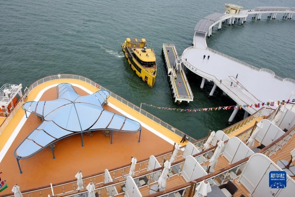 當(dāng)日,位于山東省煙臺(tái)市萊山區(qū)的“耕海1號(hào)”海洋牧場(chǎng)綜合體二期項(xiàng)目投入運(yùn)營(yíng)?!案?號(hào)”集漁業(yè)養(yǎng)殖、海上觀光、休閑垂釣、餐飲住宿、科研科普等于一體,創(chuàng)新性實(shí)現(xiàn)現(xiàn)代海洋漁業(yè)、海洋工程技術(shù)和海洋文化旅游產(chǎn)業(yè)深度有機(jī)融合。新華社記者 李紫恒 攝