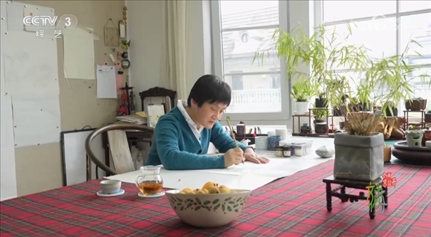 工筆花鳥畫家 上海市文史研究館館員 萬芾:我們看看這幅,這幅應(yīng)該我們很熟悉的一味中藥材就是人參,看了中藥這么美麗的花,這么有生命力的現(xiàn)象,是不是我們吃的時(shí)候也不苦了。