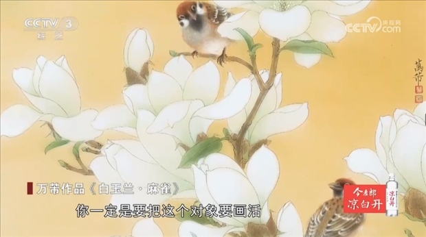 工筆花鳥畫家 上海市文史研究館館員 萬芾:我體驗(yàn)了一個(gè)生命的過程,我也看著鳥的成長,也看著花從一顆種子到發(fā)芽,到花蕾到盛開、凋零,生命的過程每次看我都很有感觸,我說生生不息,每張畫里都是這樣的給你的體會,甚至有時(shí)候我覺得我就像一一朵花,一只鳥一樣,我會自由地飛翔。