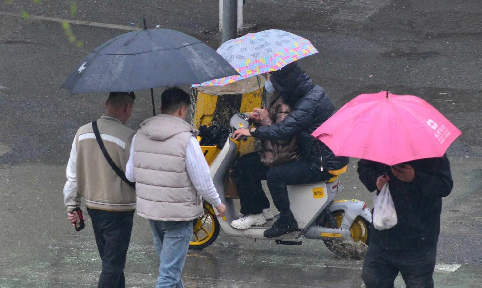 2023年4月28日,沈陽,降雨降溫持續(xù)多日,市民著厚衣出行。視覺中國