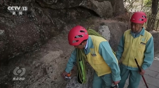 李培生:“放繩索是我們的本職工作,我們要把本職工作做好,不管哪里有垃圾,放得再長(zhǎng)、再險(xiǎn)的地方,我們只要看到垃圾,就必須去撿起來,我們要把黃山保護(hù)好?!?/p>