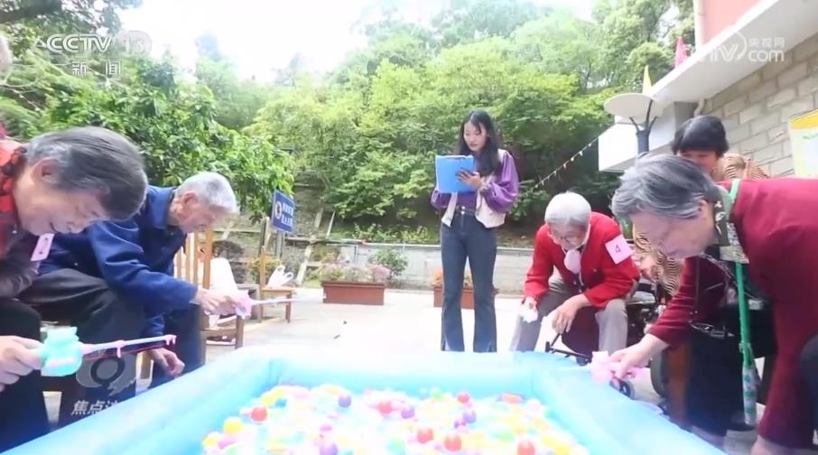 充氣魚池、塑料魚、網(wǎng)兜、小桶,在福利院的大院里,一場趣味釣魚大賽正在緊張進(jìn)行。這個(gè)披肩長發(fā)、特別愛笑的裁判是老人們的“開心果”,也是福利院的“90后”社工朱小冉。和護(hù)理員楊愛紅不同,朱小冉的主要工作通俗來說,就是怎么讓老人們過得更樂呵。