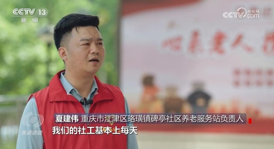 重慶市江津區(qū)珞璜鎮(zhèn)碑亭社區(qū)養(yǎng)老服務(wù)站負(fù)責(zé)人夏建偉:“一天下來,滿滿當(dāng)當(dāng)?shù)?,我們的社工基本上每天都超過了兩萬三千步的樣子。雖然說很累,但是每一個(gè)社工都很愉快,都覺得在這個(gè)過程當(dāng)中找到了快樂,也找到了成就感?!?/p>