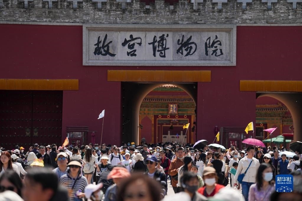 4月29日,游客在參觀結(jié)束后走出故宮博物院。