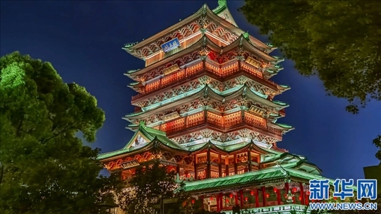 南昌文化地標(biāo)滕王閣夜景美輪美奐。新華網(wǎng)發(fā)