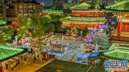 “雄州霧列,俊采星馳……”在碧波蕩漾的贛江之濱,夜色中的滕王閣莊重典雅,贛江夜景更是美不勝收?!拔逡弧奔倨?,大批游客來(lái)到南昌文化地標(biāo)滕王閣游玩打卡,感受歷史文化。如今,南昌正成為熱門旅游目的地,煥發(fā)著文化旅游中心城市的新魅力。