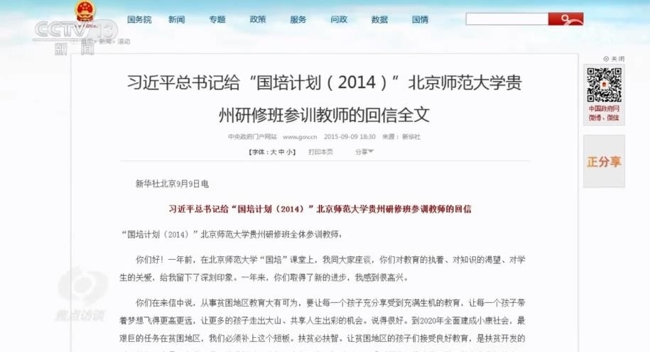 2015年8月,黃俊瓊和一起參加“國培計劃(2014)”北京師范大學(xué)貴州研修班的其他教師給習(xí)近平總書記寫了一封信,匯報他們一年來的工作。很快,習(xí)近平總書記給他們回信了,在信中,總書記勉勵他們,努力做教育改革的奮進(jìn)者、教育扶貧的先行者、學(xué)生成長的引導(dǎo)者,為貧困地區(qū)教育事業(yè)發(fā)展、為祖國下一代健康成長繼續(xù)作出自己的貢獻(xiàn)。