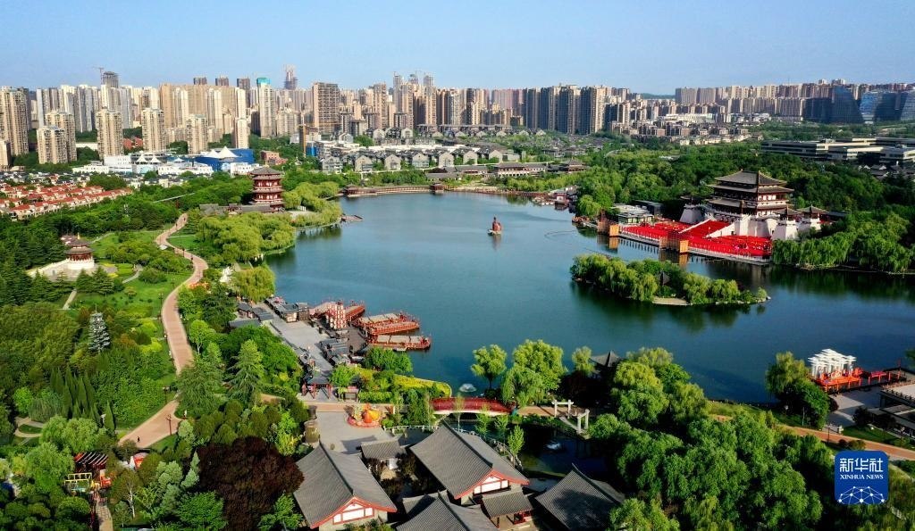 西安大唐芙蓉園(4月25日攝,無人機(jī)照片)。