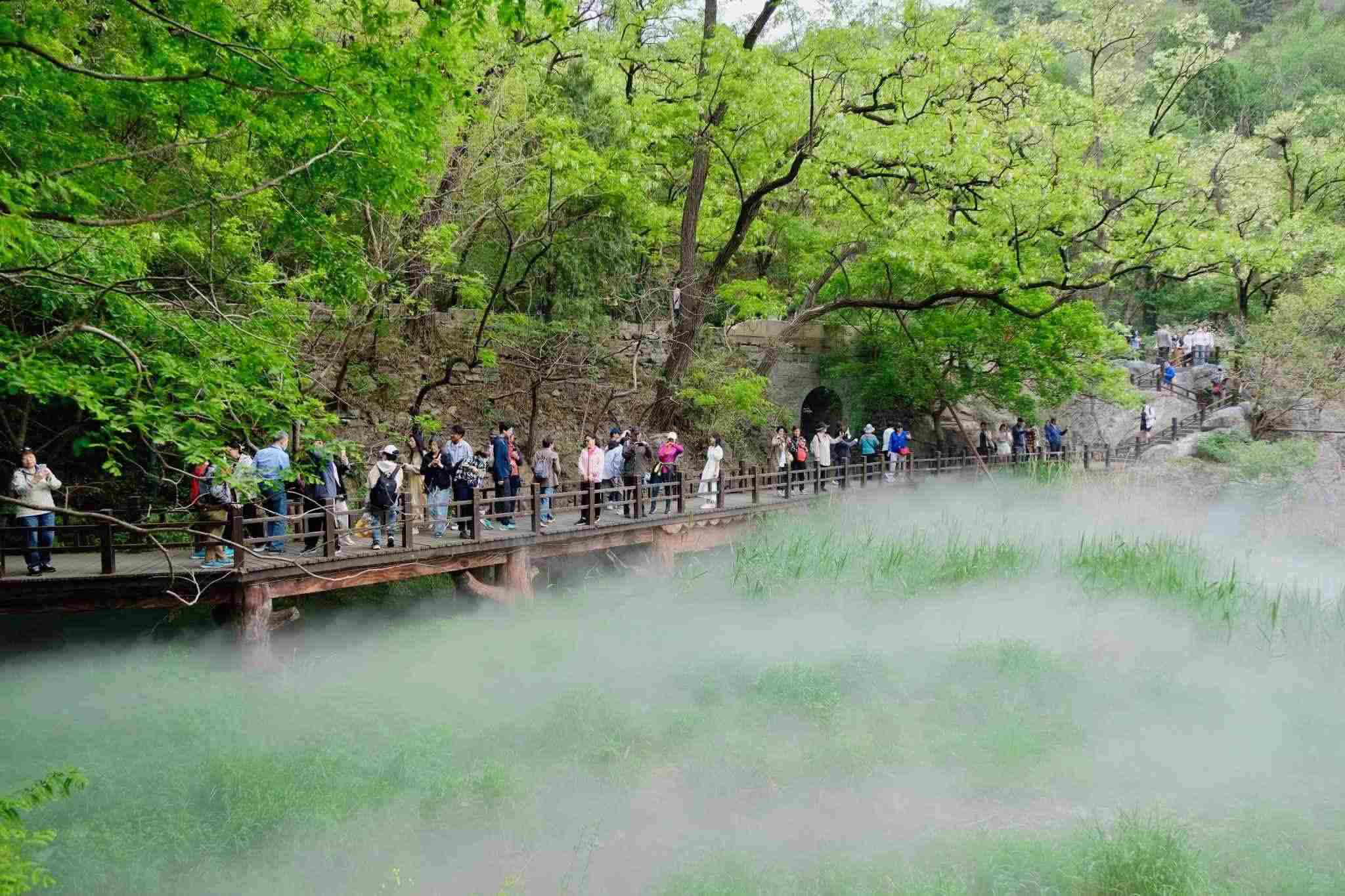 2023年5月6日,北京,立夏時節(jié),萬物繁茂,國家植物園櫻桃溝景區(qū)“云霧繚繞”宛若“仙境”。視覺中國