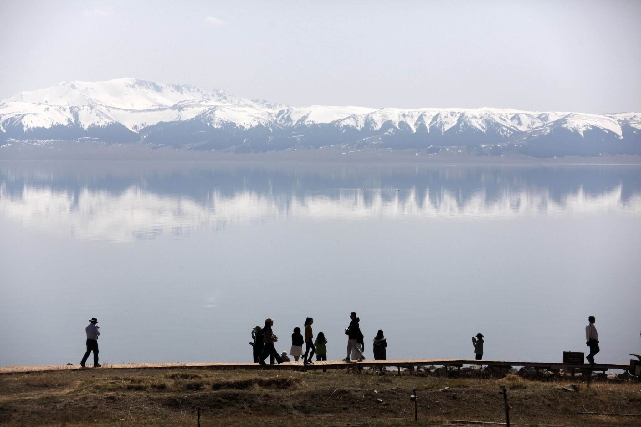 2023年5月8日,新疆博州,賽里木湖景區(qū)風光秀美,吸引游客前來游玩。視覺中國