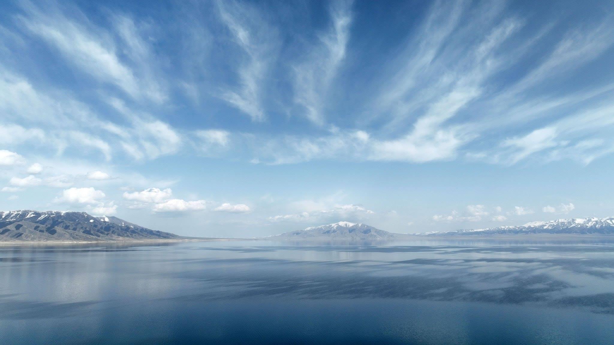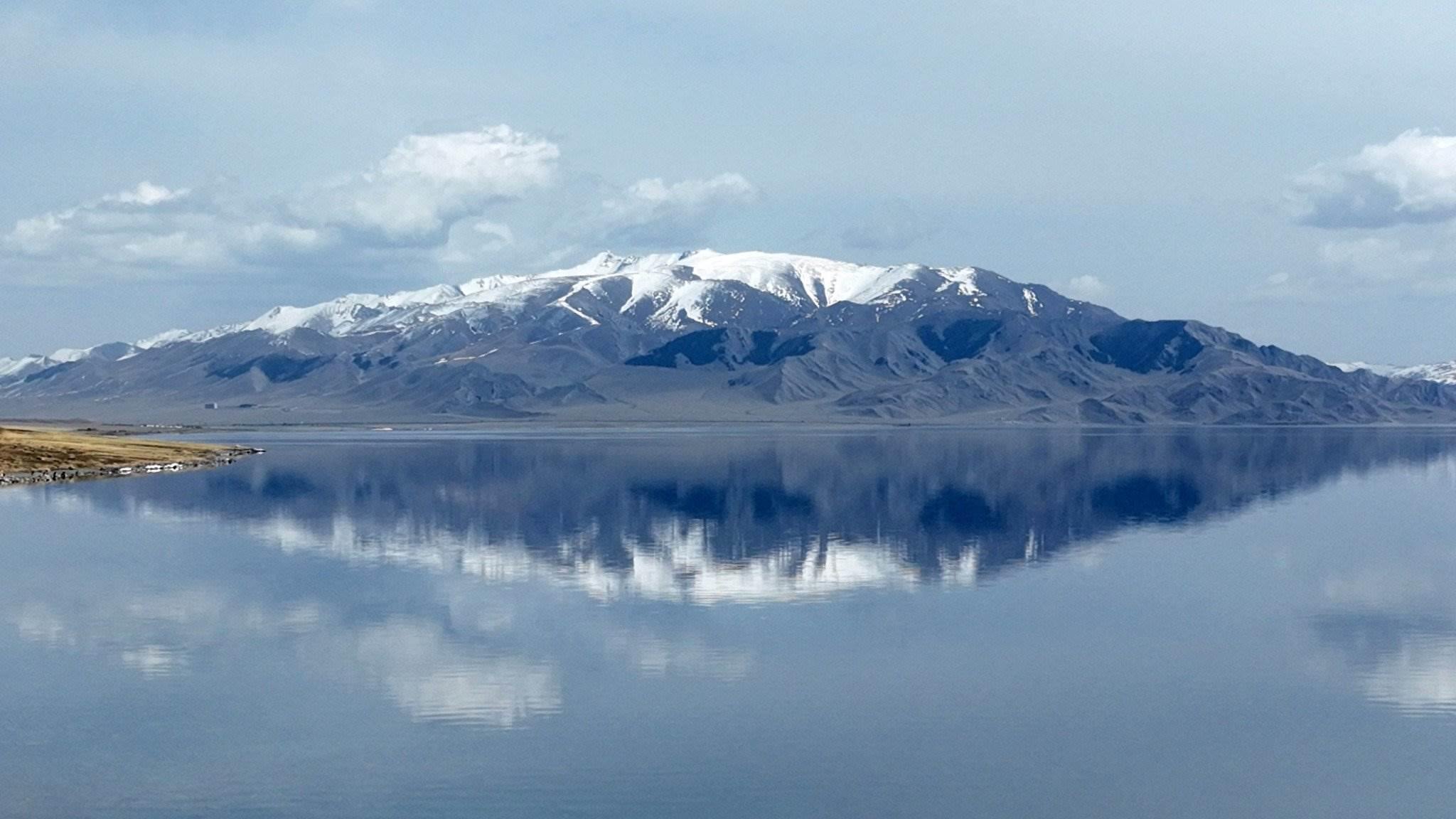 新疆博州:賽里木湖與雪山相互映襯