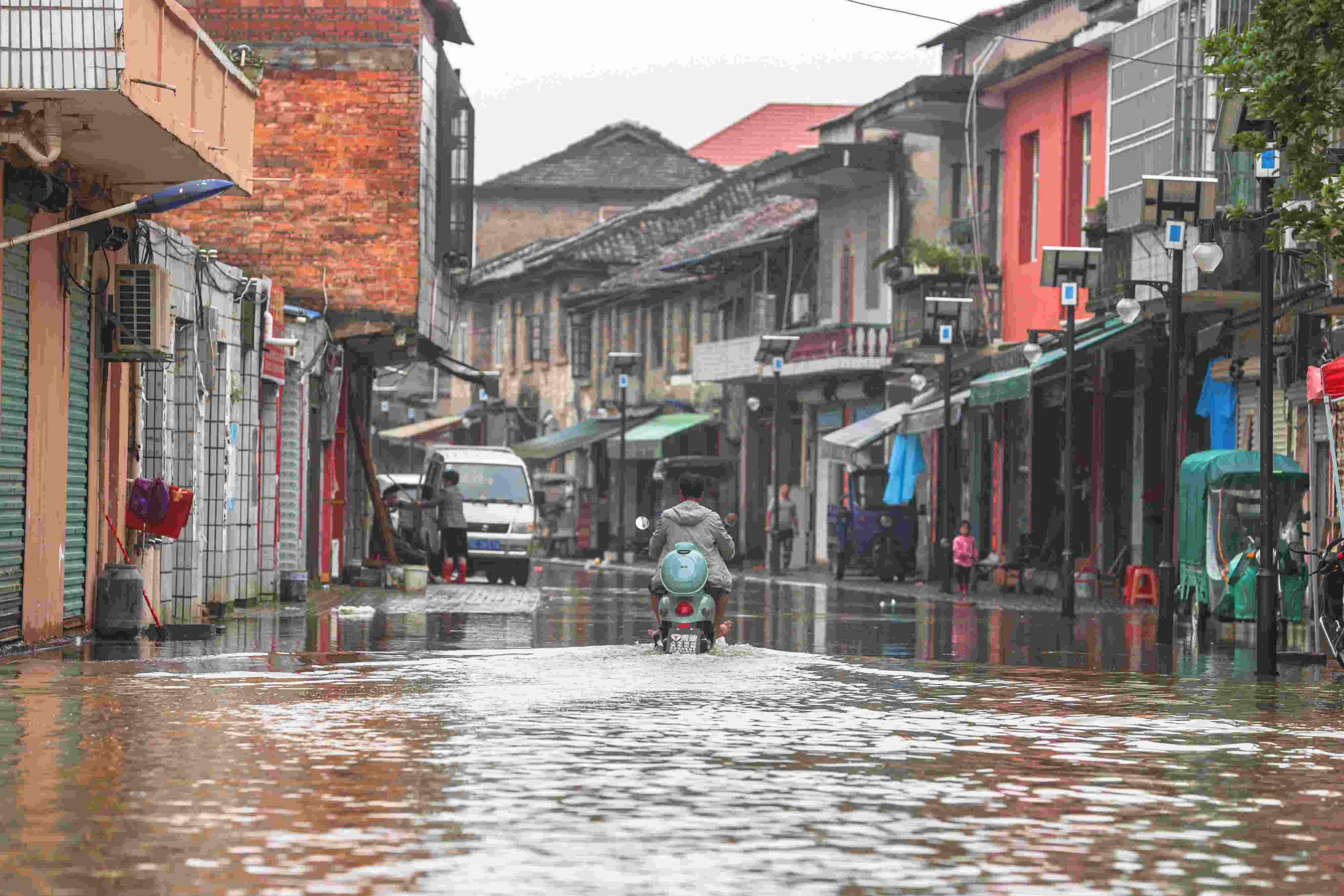 2023年5月6日,江西宜春,豐城市麗村鎮(zhèn)清豐堤河堤附近一村鎮(zhèn)受潰堤影響,出現(xiàn)內(nèi)澇。 視覺中國
