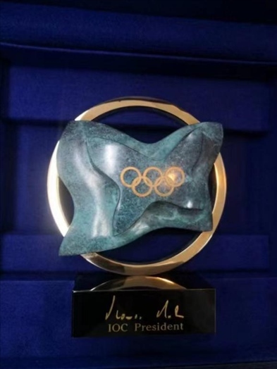 據(jù)介紹,該獎(jiǎng)杯由被譽(yù)為“當(dāng)代米開(kāi)朗基羅”的西班牙國(guó)寶級(jí)雕塑家Rosa Serra設(shè)計(jì)制作,基座配有現(xiàn)任國(guó)際奧委會(huì)主席巴赫的親筆簽名。該獎(jiǎng)杯以在瑞士洛桑的國(guó)際奧委會(huì)總部大樓“奧林匹克之家”為原型設(shè)計(jì),大樓為和平鴿造型,象征著和平與友誼,是奧林匹克運(yùn)動(dòng)傳遞的最重要信息之一。據(jù)悉,“奧林匹克之家”大樓于2019年6月23日國(guó)際奧林匹克日正式啟用。