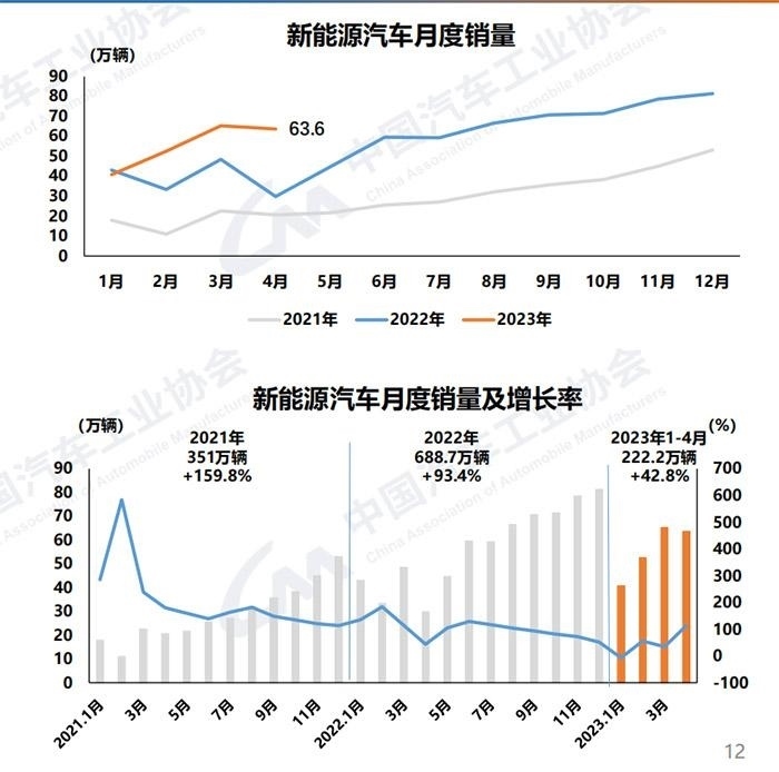 中新網(wǎng)5月11日電 (中新財(cái)經(jīng) 葛成)11日,中汽協(xié)發(fā)布汽車產(chǎn)銷數(shù)據(jù)。2023年4月,汽車產(chǎn)銷分別完成213.3萬(wàn)輛和215.9萬(wàn)輛,同比分別增長(zhǎng)76.8%和82.7%;新能源汽車產(chǎn)銷分別完成64萬(wàn)輛和63.6萬(wàn)輛,同比均增長(zhǎng)1.1倍;汽車企業(yè)出口37.6萬(wàn)輛,同比增長(zhǎng)1.7倍。