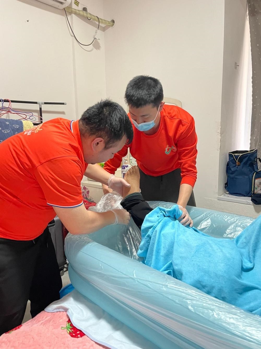 這樣的助浴服務,晏楊俊祺已經完成了200多次,每一次都是磨人的“大工程”。身為四川福樂家綜合養(yǎng)老服務有限責任公司的助浴師,上門服務前,他都要初步掌握老人病史、皮膚情況、血壓血糖、是否有自主活動能力等基本信息,據此做好各項準備,同時發(fā)給老人家屬一些有關助浴流程和內容的視頻。服務時,對于失能老人,助浴師還需分工協作,通常一人主要負責洗澡,一人負責陪老人說話并觀察身體狀態(tài),還有一人負責換水、幫忙抬抱老人等,整個服務過程大約1個小時。