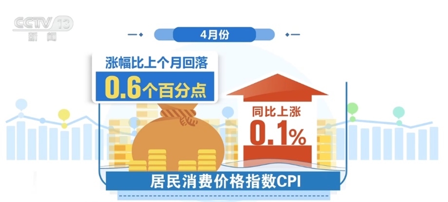 國家統(tǒng)計(jì)局新聞發(fā)言人付凌暉介紹,今年以來,居民消費(fèi)價(jià)格指數(shù)也就是CPI同比漲幅總體上是回落的,4月份同比上漲0.1%,漲幅比上個月回落了0.6個百分點(diǎn),CPI走低主要是一些階段性因素影響。