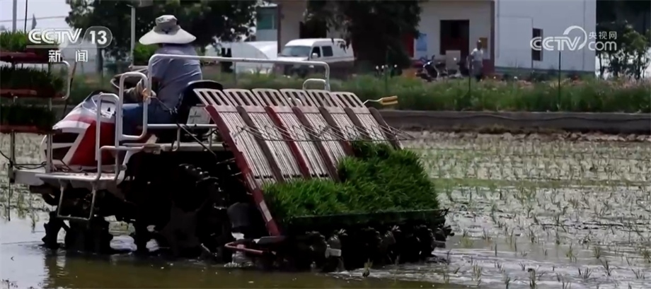 在四川廣安, 眼下正是水稻移栽的關(guān)鍵時(shí)期,在廣安市一處工廠化育秧車間里,工作人員將一盤盤秧苗從輸送帶上取下來(lái),再送到需要插秧的水田里。工廠化育秧不僅可以縮短水稻育秧時(shí)長(zhǎng),還能提高秧苗抗病蟲(chóng)害能力。