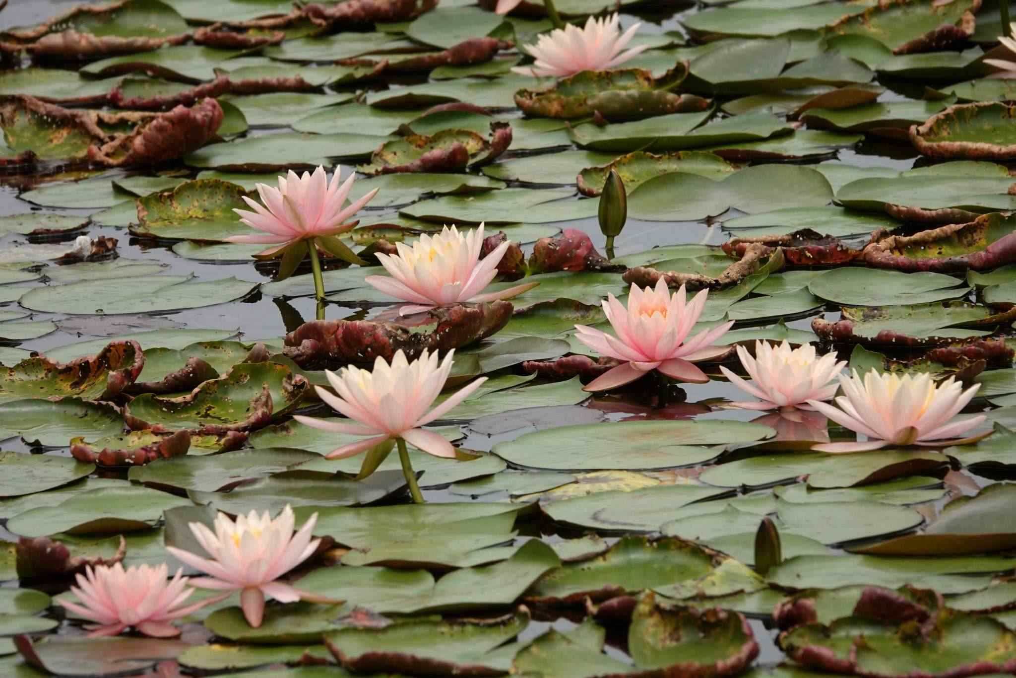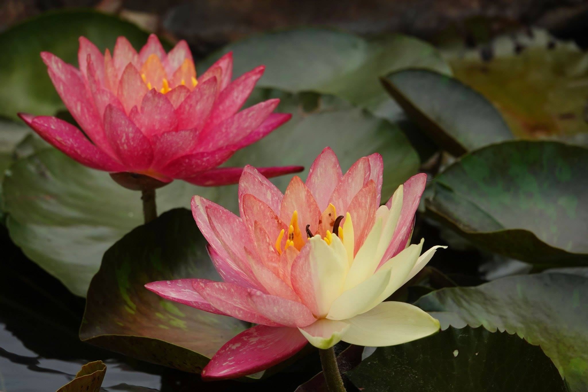 2023年5月18日,初夏時(shí)節(jié),南寧市青秀山風(fēng)景區(qū)水生植物園五顏六色的睡蓮次第綻放,一花雙色的睡蓮引人注目。視覺(jué)中國(guó)