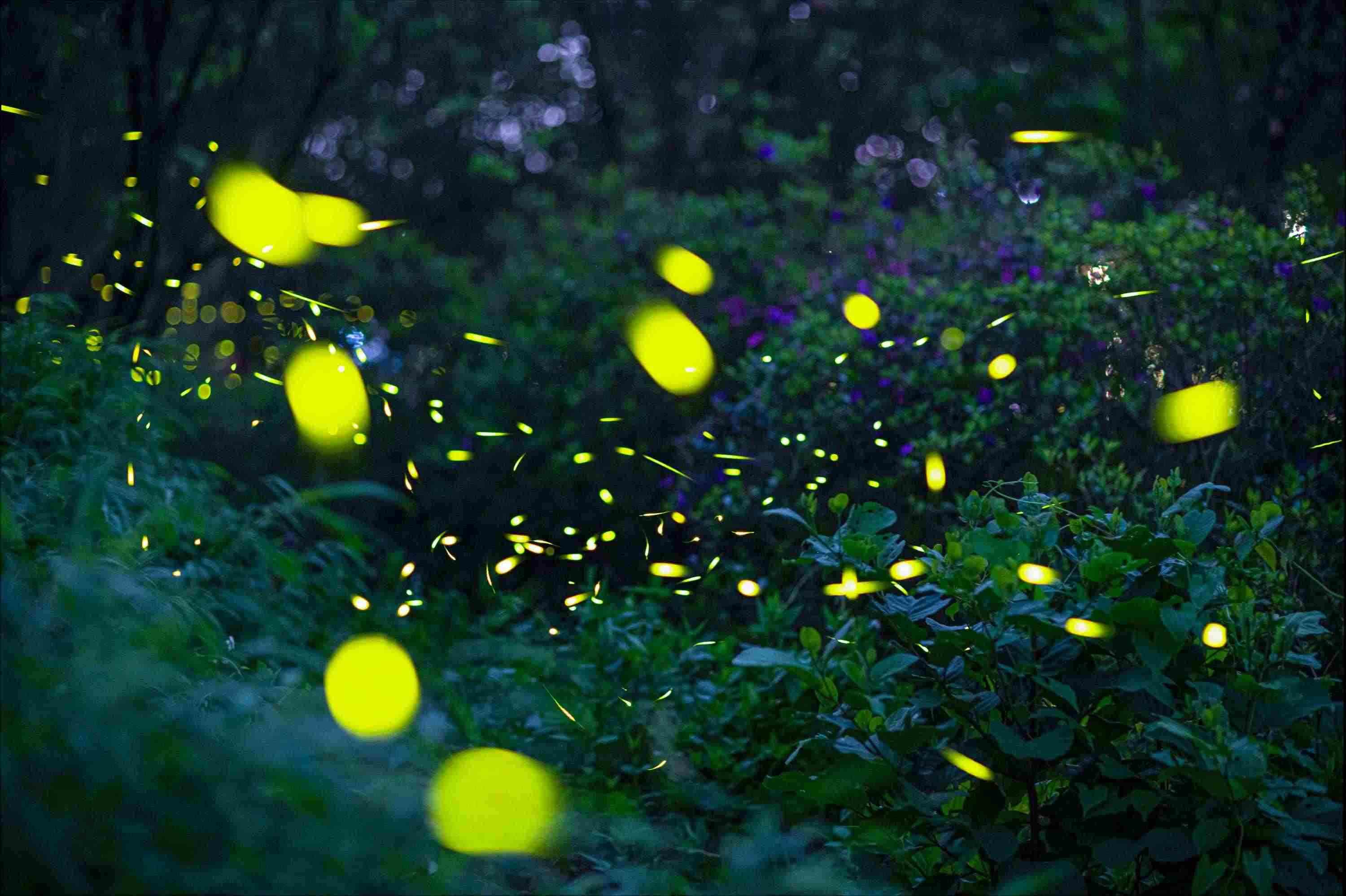 2023年5月15日,廣東佛山,南海區(qū)西樵山景區(qū),螢火蟲在林間飛舞。 視覺中國