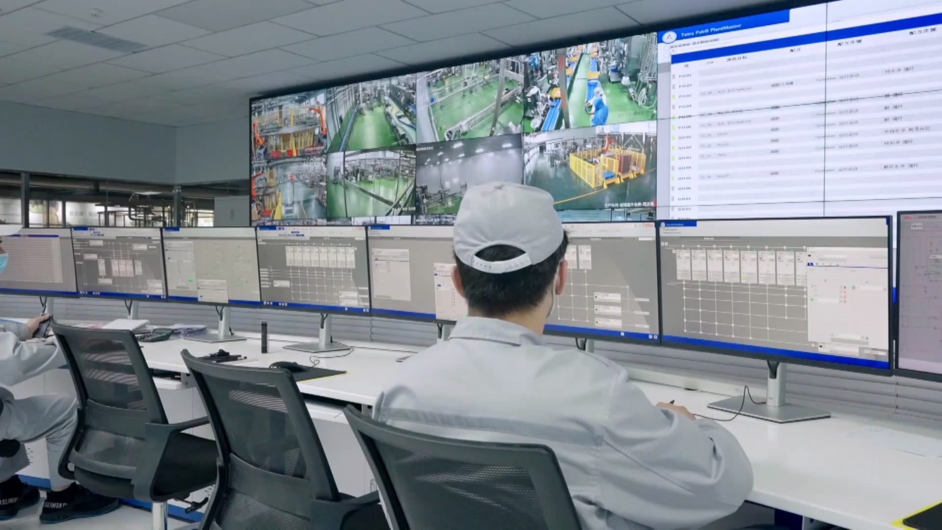 總臺記者 張智:智能生活,無處不在,哪怕只是一袋小小的牛奶。在我所在的這間智能工廠,19條智能生產(chǎn)線正在高速運轉(zhuǎn),百余種乳制品被生產(chǎn)出來,送往千家萬戶。從鮮奶、各種原輔料,到成為一箱箱包裝完備的牛奶,每一道生產(chǎn)流程都被數(shù)字化,整個過程不超過24小時。通過設(shè)備上的傳感器,溫度、壓力、流量等信息傳輸?shù)街腔鄞竽X。工人們在控制中心就可實現(xiàn)全流程監(jiān)管。智能化、數(shù)字化的生產(chǎn)方式,讓乳業(yè)制造向“智造”飛躍。